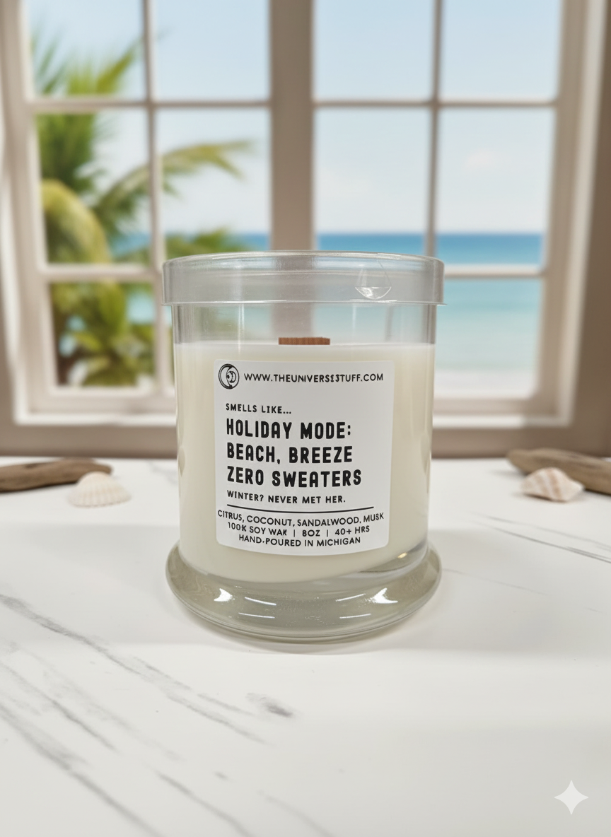 "Holiday Mode: Beach, Breeze Zero Sweaters" Soy Wax Candle